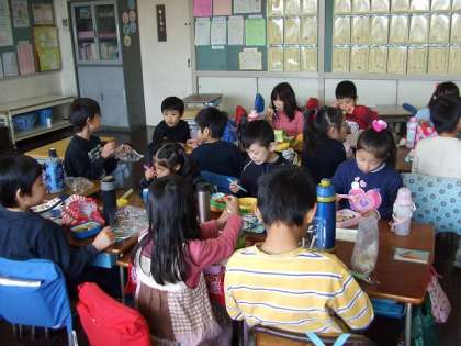 昨日からお昼はお弁当になりました。全クラスとはいきませんが、様子をアップしました。
