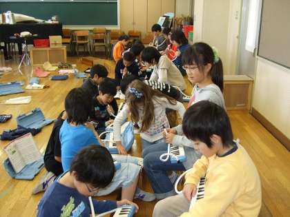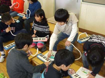 鍵盤ハーモニカで「明日があるさ」を演奏しています。