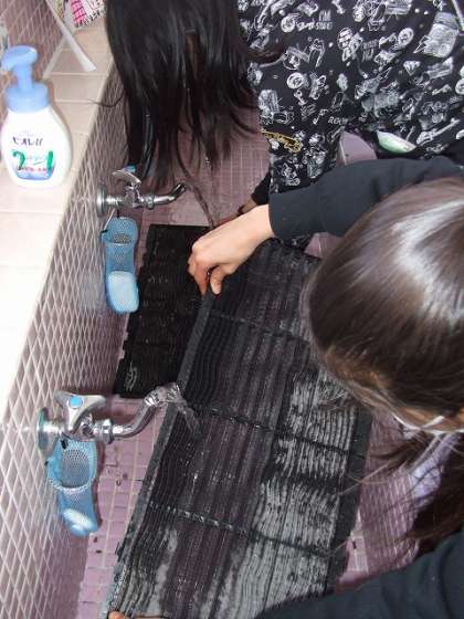 水が冷たいのにもかかわらず、一生懸命フィルターを洗ってくれました。