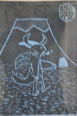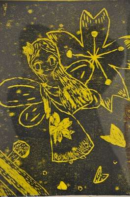 4年生の作品が2階の廊下に飾られています。