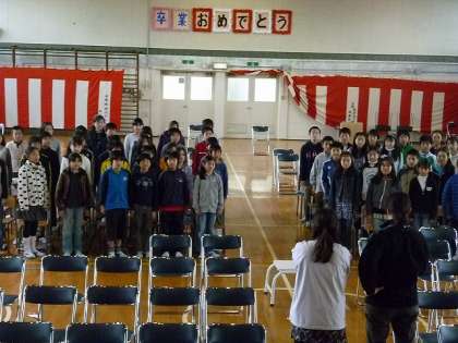 6年生との卒業式合同練習が終わった後に、5年生だけで合奏の練習をしました。