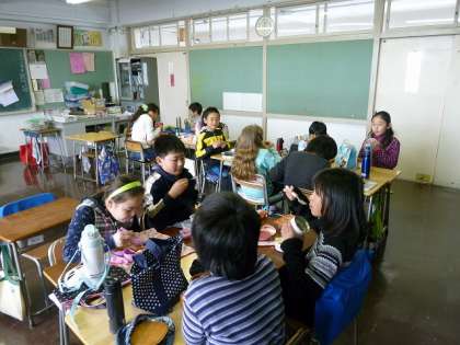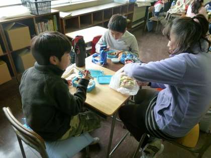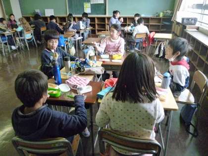 4年1組で食べる最後のお昼時間でした。