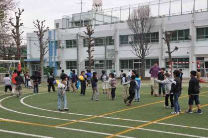風が強く吹いていましたが、子どもたちは元気いっぱいで外遊びをしています。
