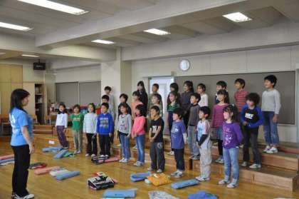 離任式で歌う歌の練習をしています。顔の表情もよく、とてもきれいな声で歌っています。