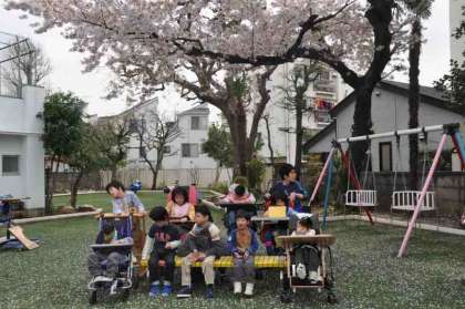 みんなで春を探した後で、満開の桜の下で写真を撮りました。