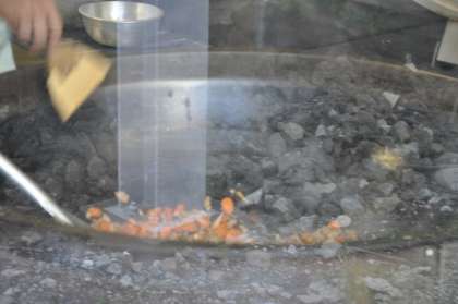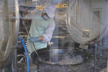 今日のメニューの一つ、春野菜の煮物の調理が進められています。