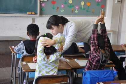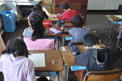 正しいえんぴつの持ち方を学んだあとで、実際に線を引いたり丸を書いたりしています。