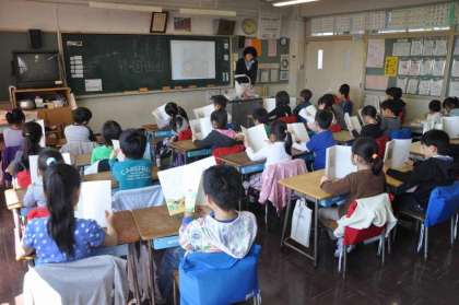 国語の教科書の「たんぽぽ」を音読をしています。
