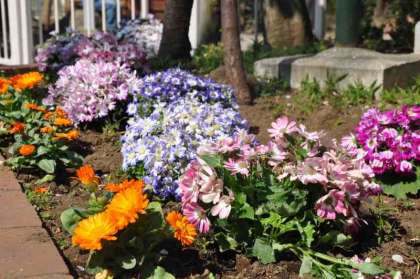 栽培委員会の子どもたちが植えた草花が、登校する子どもたちや来校者を迎えてくれています。