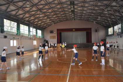 ボールを使った体づくりの運動に取り組んでいます。