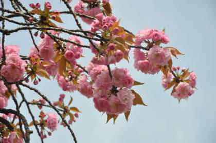 校庭の八重桜が、一気に花を咲かせました。とてもきれいです。