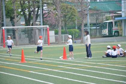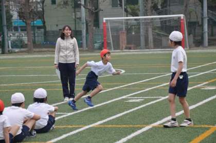 速く走るために気を付けることを確認した後で、タイム測定をしています。