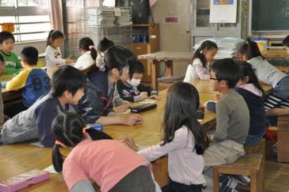 初めての図工の授業でしたので、自己紹介カードを書いています。