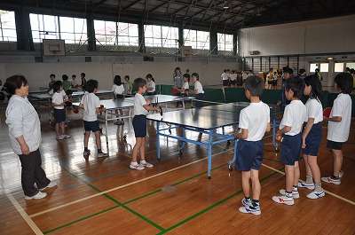 今年度1回目の卓球クラブの活動です。はじめにクラブ長などを決めた後に、卓球台の出し方などを確認し、ラケットでボールを打ちました。