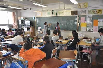 線対称や点対称な図形を実際に描き、ポイントを確認しています。