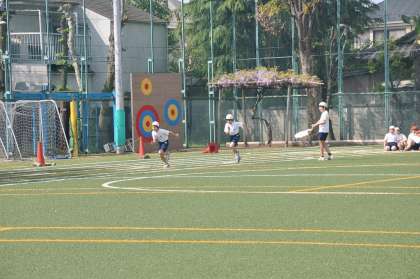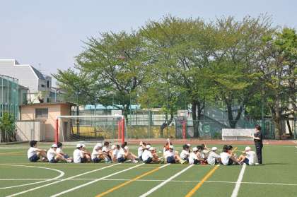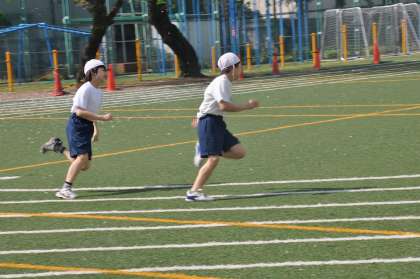 トラックにそって走ります。コーナーでスピードを落とさないようにすることが大切です。