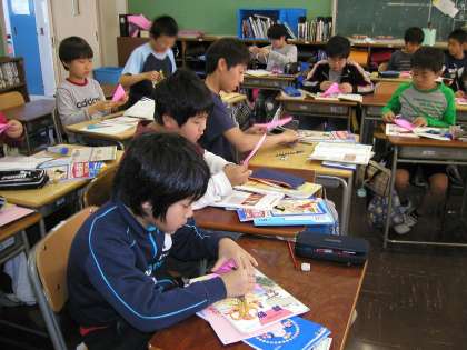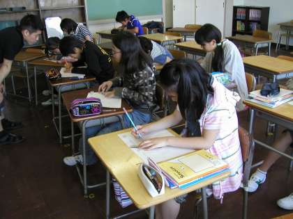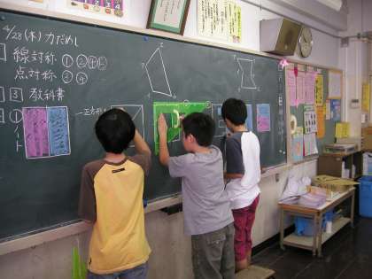 少人数指導の各教室では、対称な図形を実際に作っています。
