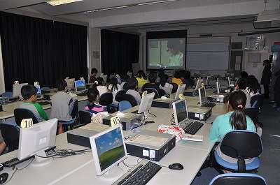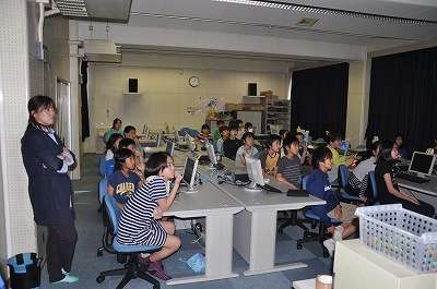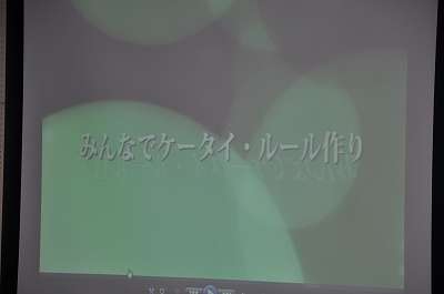 電子教材を使って携帯電話を使うときのルールを学んでいます。