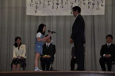 出席されなかった先生方、主事さん方へのお礼の作文は、代わりに校長が受け取りました。