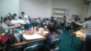 12:15 品川水族館にいます。みんなでお昼ご飯を食べています。いただきます。