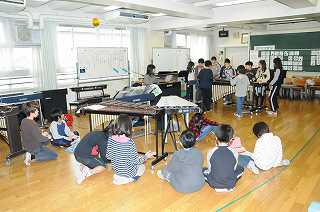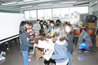 「茶色のこびん」の合奏の練習をグループごとに行っています。