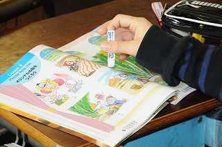 日本の物語を英語で聞き、英語ノートのどのお話かを考えています。