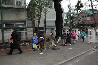 目黒郵便局への見学から戻ってきました。寒いですがみんな元気です。