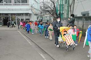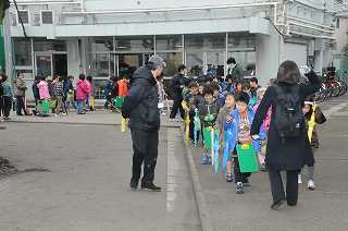 2月に自分たちが開く子ども郵便局の準備の一環として、目黒郵便局に見学に行きます。話が終わり学校を出発しました。