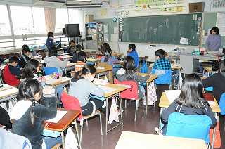 つなぎ言葉を使って文を作り、発表しています。