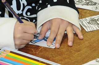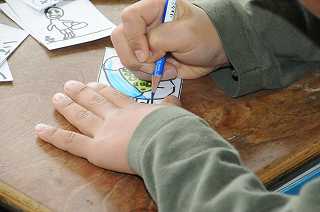 自分たちで考え、作っている「かるた」の仕上げをしています。