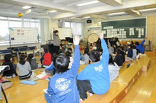 手拍子でリズム打ちをしています。このリズムを歌に取り入れていきます。