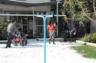 冬探しをしているところに、ちょうど雪が降りました。雪を体感しました。その後、教室に入って暖まっています。