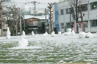 子どもたちが外に出て外遊びをした後、校庭にはたくさんの作品が残されていました。