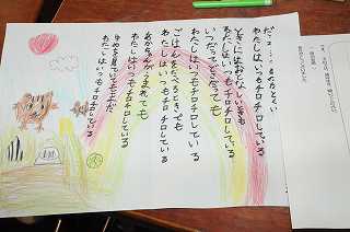 できあがった詩を台紙に貼っていきます。