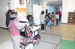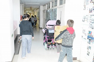 交流が終わり、体育館から教室へいっしょに帰っています。