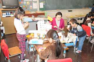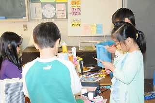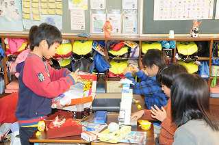 「ゆめのまち さんちょうめ」をテーマに、箱を使って作品を作っています。