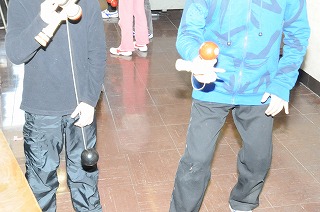 昔遊びとしてけん玉に挑戦しています。みんなリズムよく玉を乗せています。
