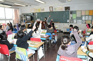 オルガンの伴奏に合わせ、みんなでアイアイを歌っています。