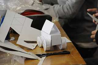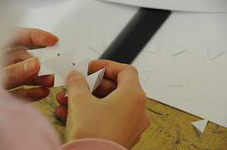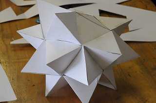 「三角眼でカット」をテーマに、多面体を完成させています。