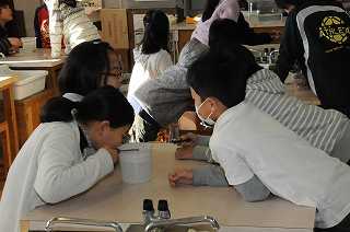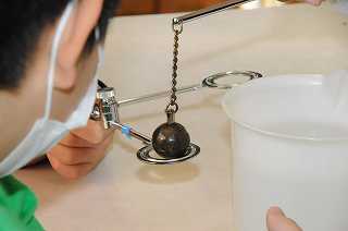 「ものの体積と温度」の単元で、今日は金属を温めたときの体積を確かめています。
