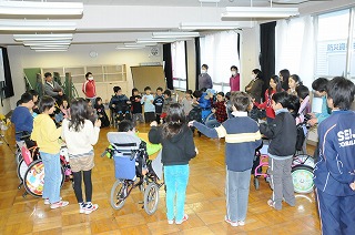 4年生の子どもが弾くピアノの音楽に合わせて体を動かしています。