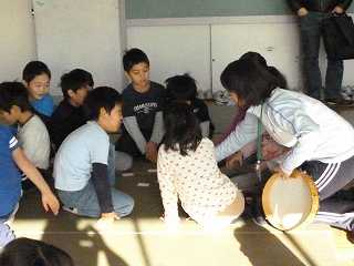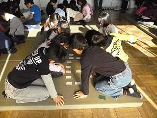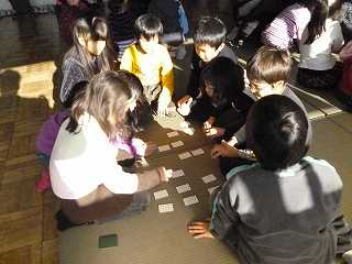 学年で集まり、グループごとに百人一首のゲームをしています。