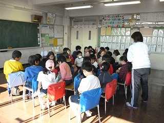 「友だちとなかよくするためには…」が、課題です。中央に集まり、これから考えます。