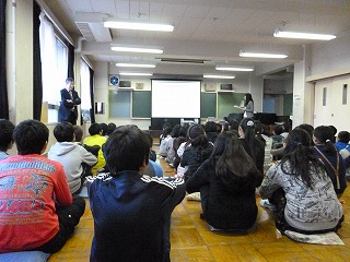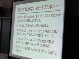 ミクシーの方を講師に、ネットを使用する上で気をつけるべきことを学んでいます。