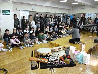 「こぎつねものがたり」の学習に入る前に、歌う準備をしています。