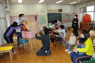 和太鼓の音とリズムを、太鼓に近いところで聴きます。
