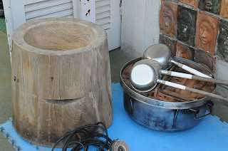 明日、油面住区住民会議の皆さんが開いてくださる餅つきの準備がたくさんの人の協力で進められています。