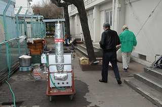 今日は、油面住区の餅つき大会です。朝早くから準備が進められています。