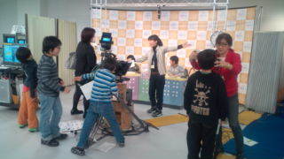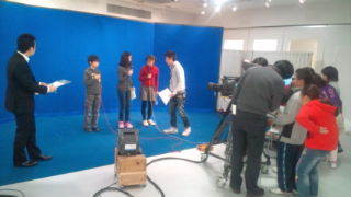 NHKにいます。放送体験として2組の番組制作が始まります。準備と練習をしています。11:15