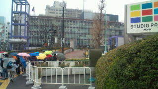 NHKを出発しました。雨が降っている中、渋谷駅に向かいます。13:30